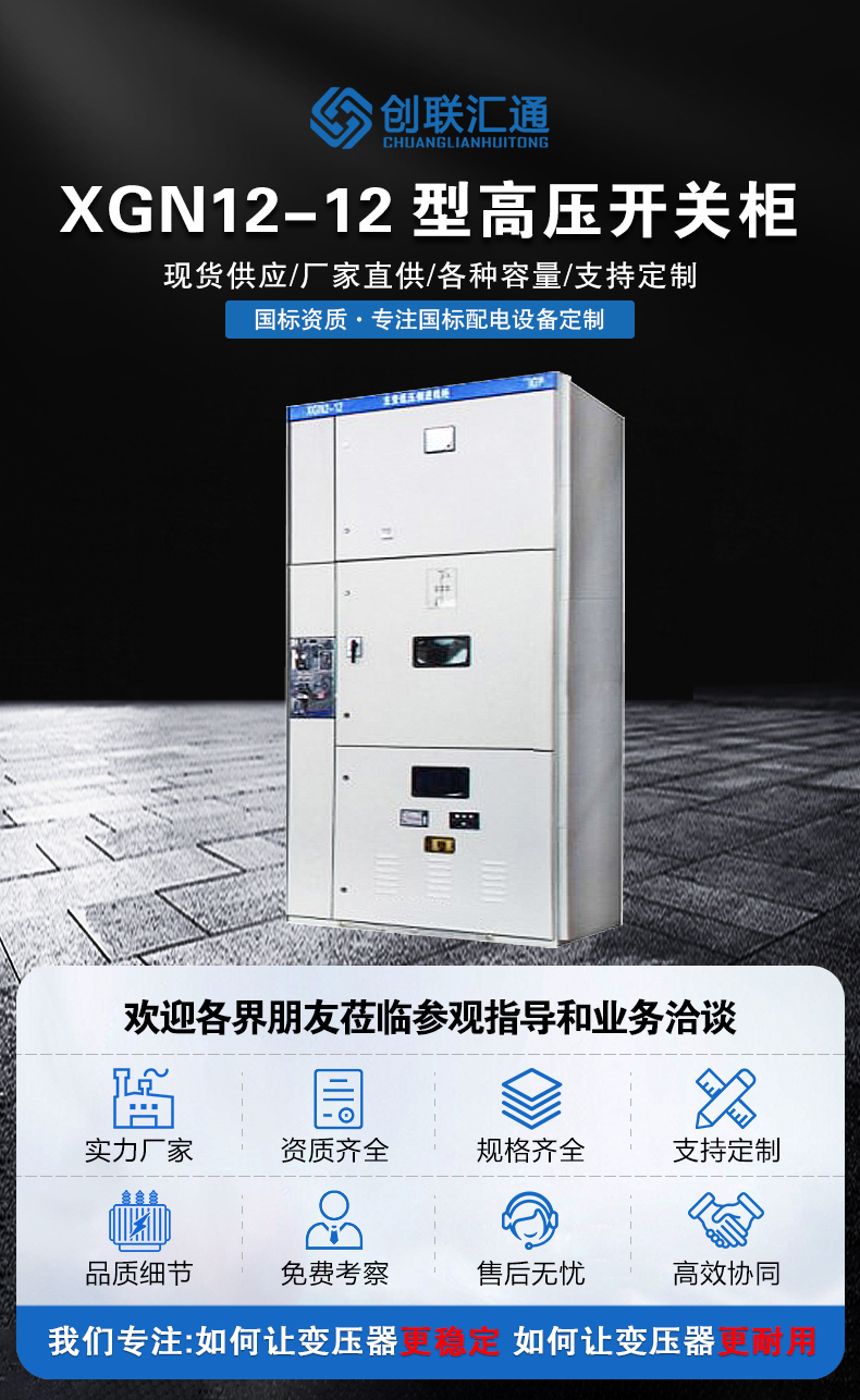 XGN2-12箱型固定式金屬封閉開關設備用于三相交流50Hz、3.6、7.2、12kV單母線及單母線分段系統(tǒng)中作為接受與分配電能之用,特別適合于頻繁操作的室內(nèi)場合。