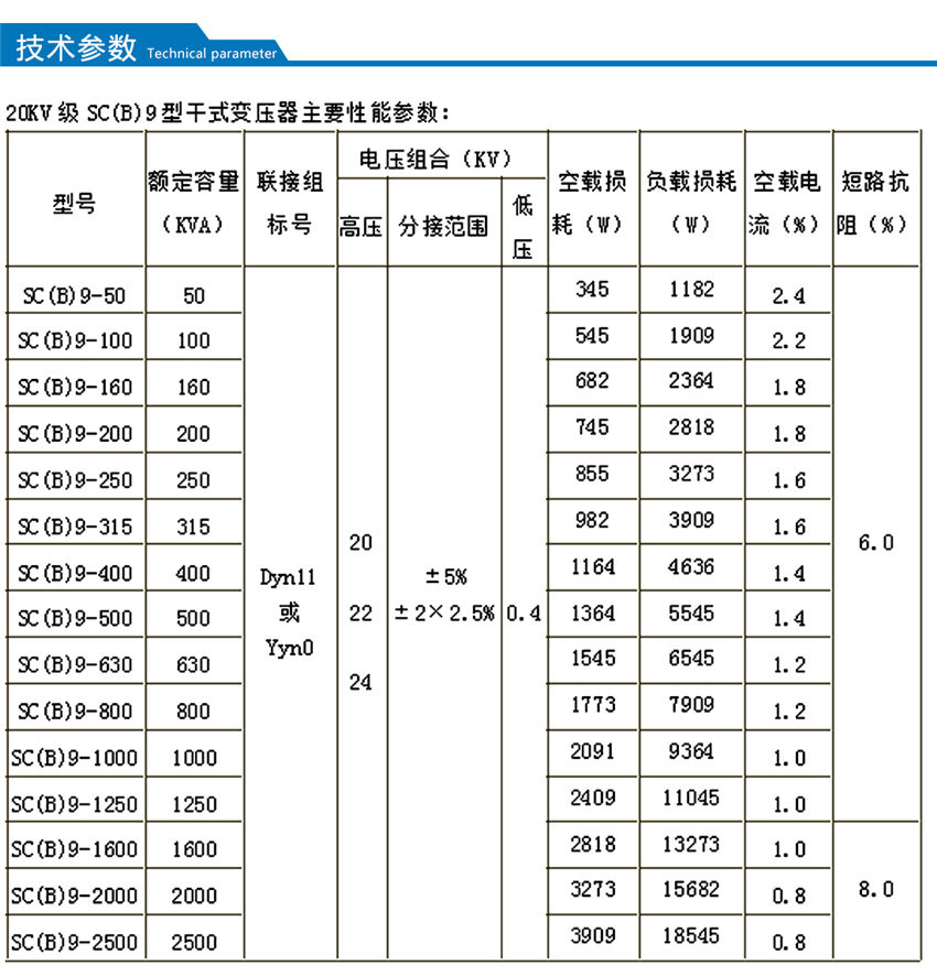 【額定容量】:50-2500kva      【額定電壓】:20kv